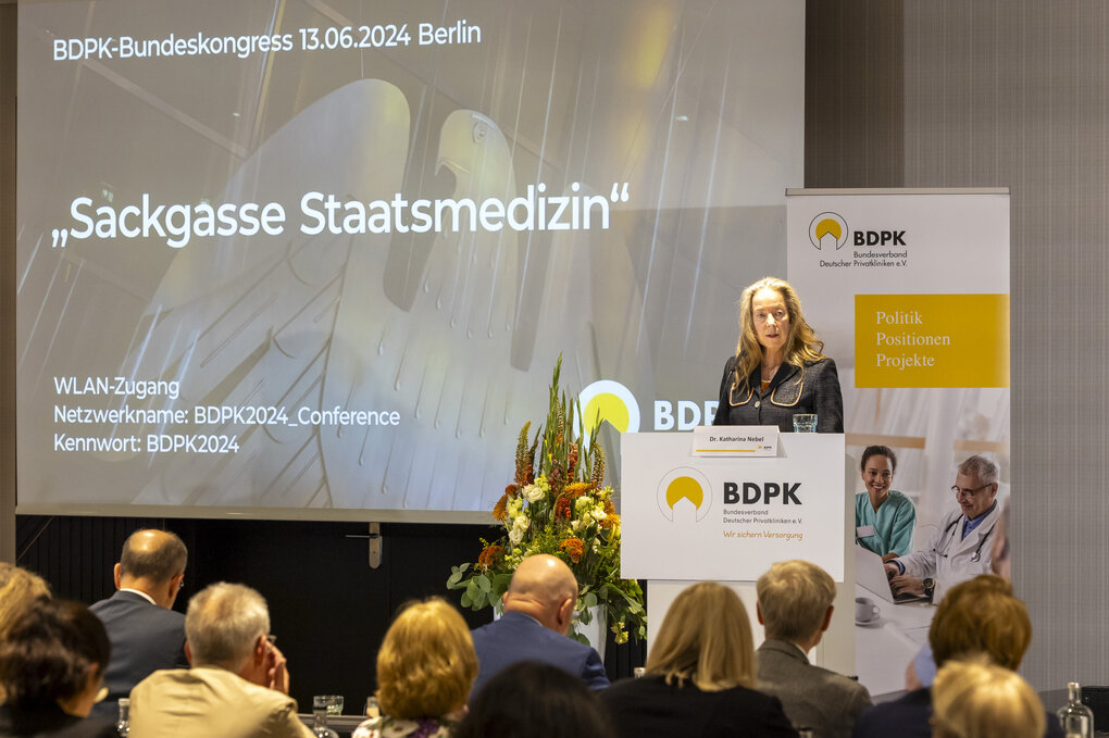 Bei der Begrüßung der 200 Kongressteilnehmer:innen im Tagungszentrum des Double-Tree-Hotels am Berliner Ku`damm stellte BDPK-Präsidentin Dr. Katharina Nebel klar, dass die privaten Klinikträger die Notwendigkeit einer Reform nicht infrage stellen. „Mehr ambulante Versorgung, mehr Qualität durch Spezialisierung und mehr Fachkräfte vor allem durch weniger Bürokratie unterschreiben wir sofort“, so Nebel. Der BDPK befürchtet allerdings, dass diese Ziele mit einer handwerklich schlecht gemachten Krankenhausreform nicht erreicht werden und sie stattdessen wie ein Krankenhausschließungsprogramm wirken werde. Damit wird die Krankenhausreform in ihrer gegenwärtigen Fassung die bestehenden Probleme der Krankenhausversorgung nicht lösen. Die desaströse Lage der Kliniken erfordert vor allem einen schnellen und wirksamen Inflationsausgleich.